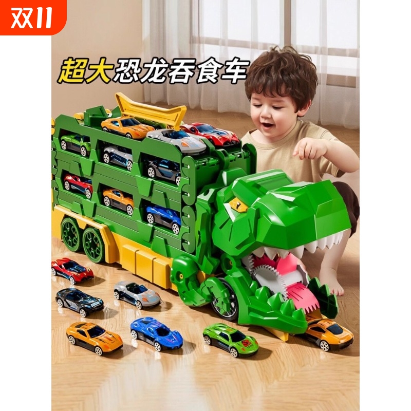 儿童霸王龙恐龙吞食轨道玩具车6变形滑行弹射合金收纳小汽车男孩3