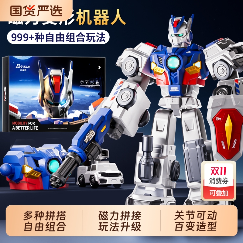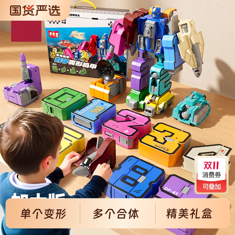 儿童益智数字变形玩具男孩3到6岁5拼装合体机器人7积木13生日礼