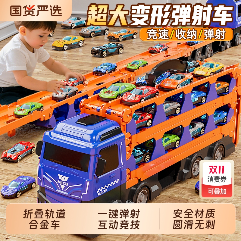儿童收纳货柜工程车变形大卡车轨道弹射汽车玩具男孩益智生日礼物