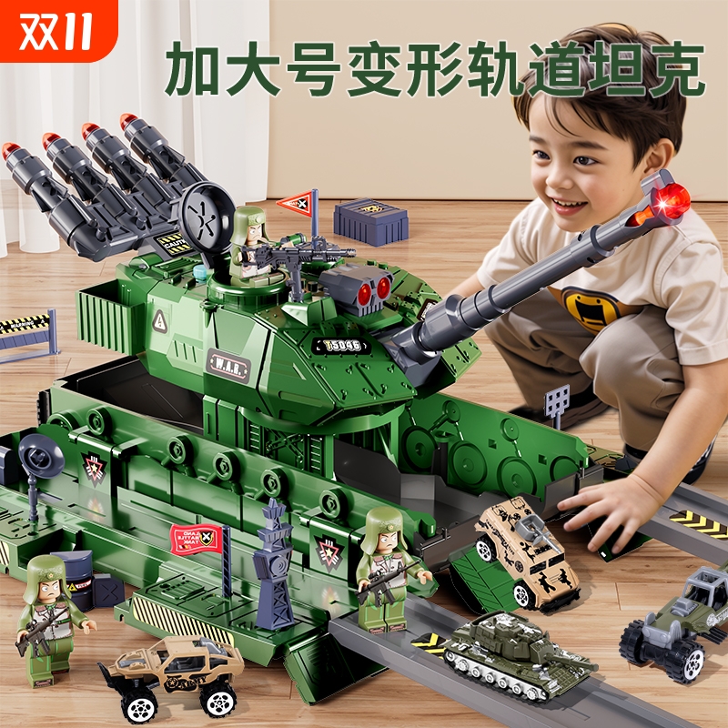 坦克汽车变形可轨道履带式合金儿童男孩玩具车礼物军事益智战车