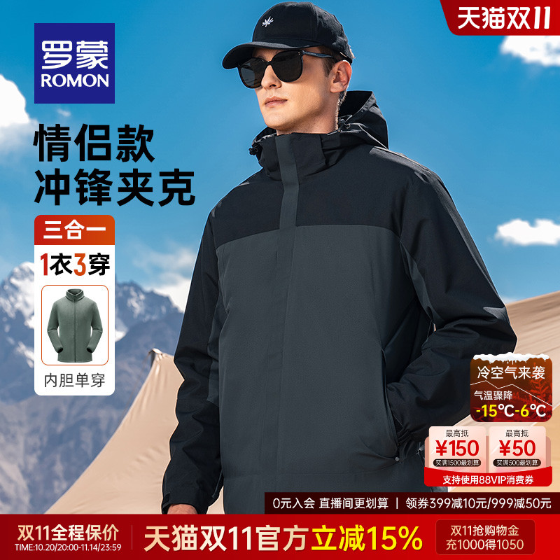 雪中飞冲锋衣男女款冬季户外防水风登山服保暖三合一可拆卸外套yf