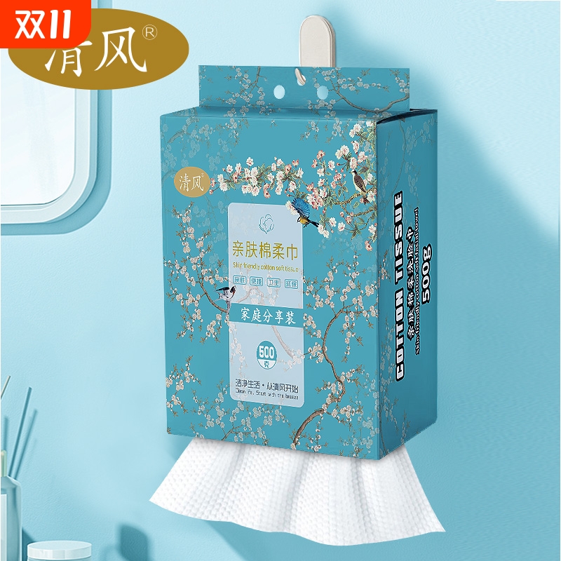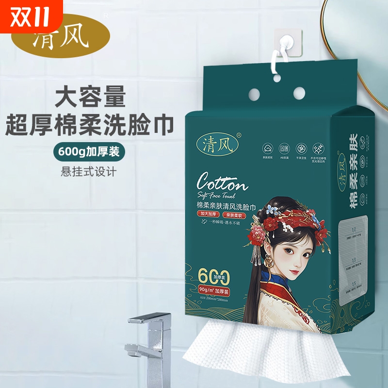 清风洗脸巾悬挂式母婴可用绵柔200*200大尺寸AB面双用洗脸巾