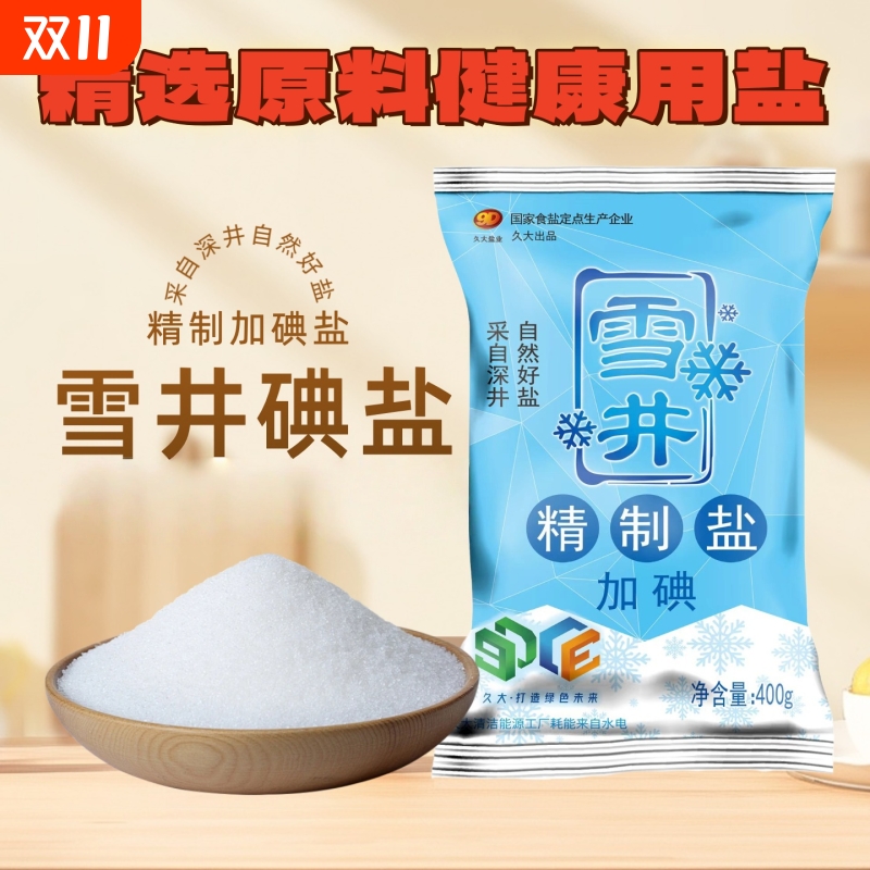 加碘精制盐泡菜调味家用千米深井400g餐饮可用井盐到手7袋