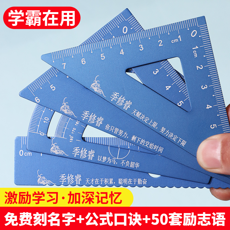 定制尺子刻名字小中学生专用文具四件套装高颜值刻字钢尺奖品礼物