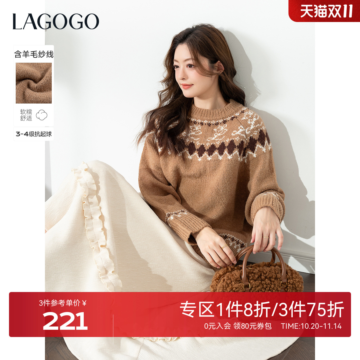 LAGOGO奶咖费尔岛暖冬插肩袖毛衣