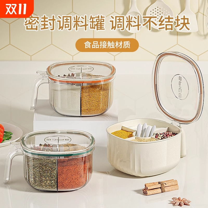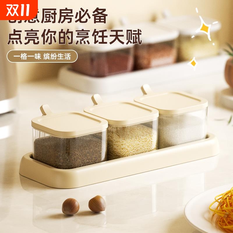 PET调料盒家用厨房调料罐组合套装多格盐味精胡椒收纳佐料调味盒