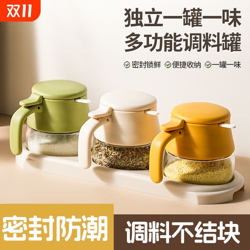 新款密封调料瓶调料厨房玻璃家用调味盐罐套装收纳盒防潮味精收纳