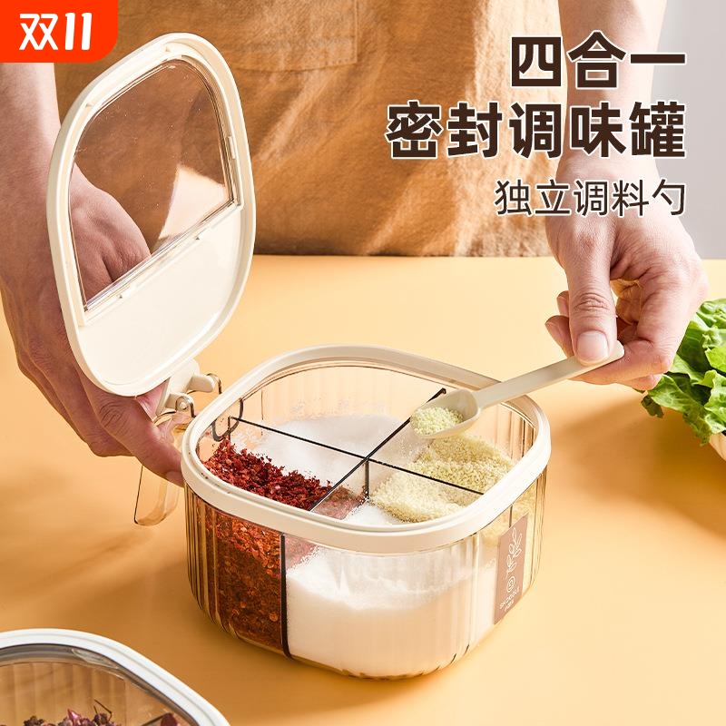 调料盒厨房家用套装一体四格调味罐佐料盐味精瓶罐多格新款调味料