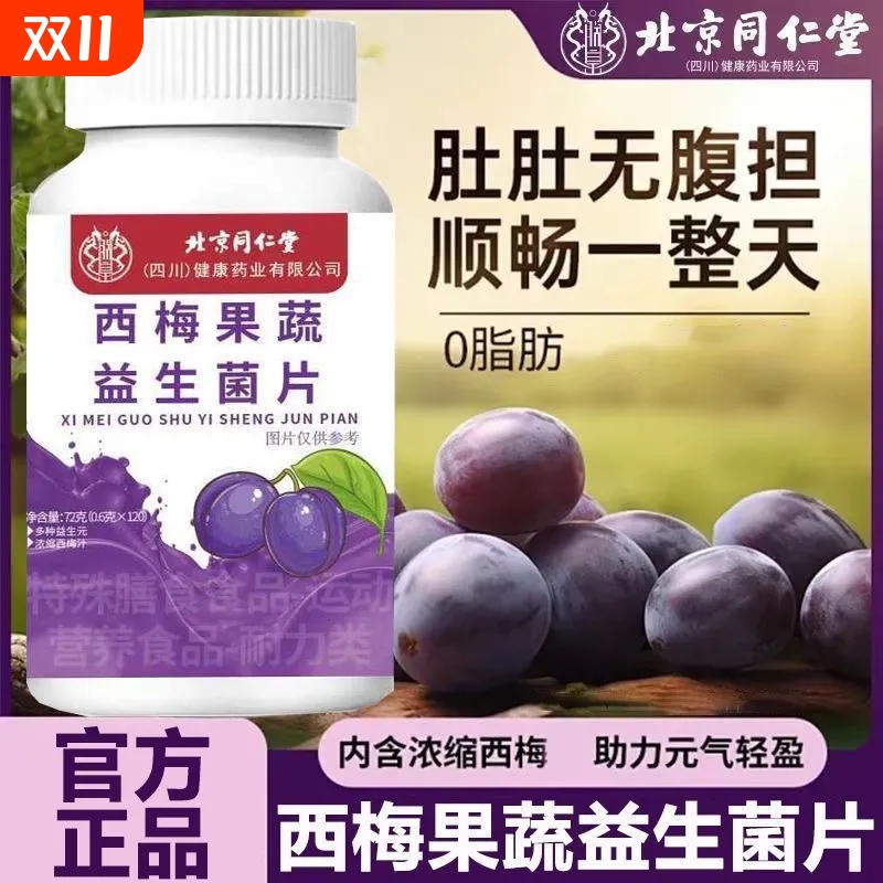 北京同仁堂西梅果蔬益生菌片促排便清肠排宿便西梅酵素片官方正品