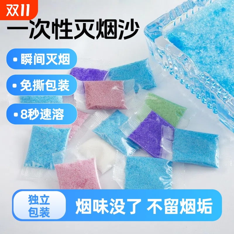 家用一次性灭烟沙免撕袋烟灰清洁剂办公室防烟味防飞灰水溶膜熄烟
