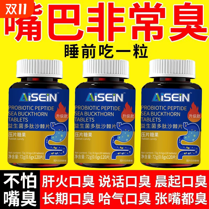益生菌多肽沙棘片口臭空气肠胃女士男士口腔异味胃火重嘴巴臭调理