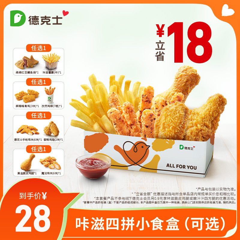 德克士 咔滋四拼小食盒(可选)单次券s【勿填陌生号码防诈骗】