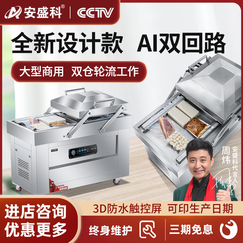 双室真空机大型商用食品包装机熟食生鲜全自动打包机抽真空封口机