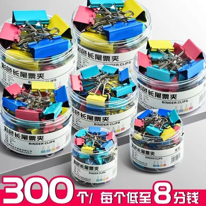 彩色长尾夹燕尾夹大号中号小号票据铁夹子混合装文件试卷固定书本文具