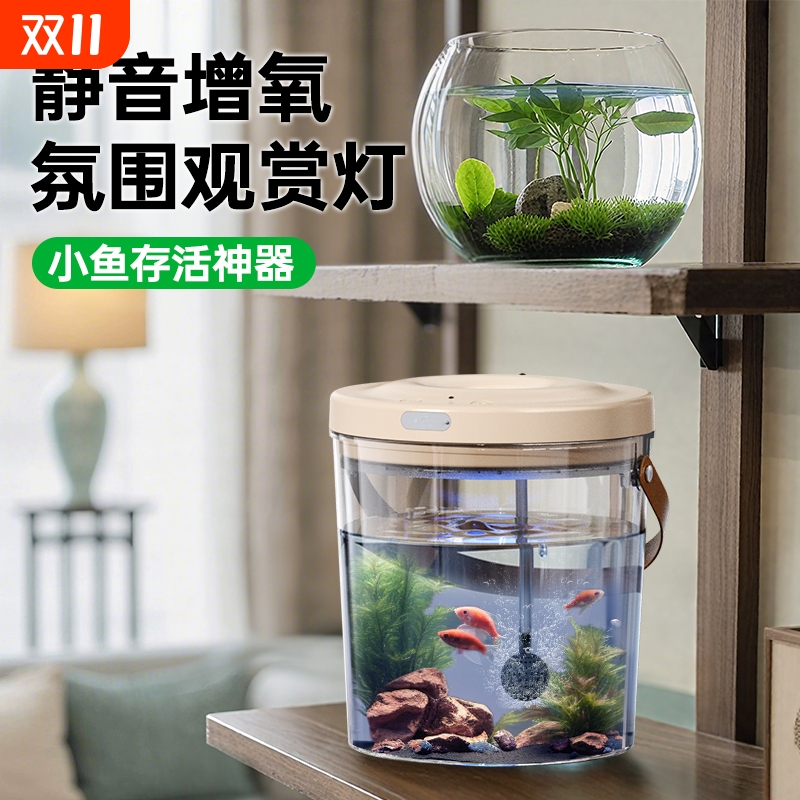 鱼缸小型桌面金鱼缸斗鱼生态打氧增氧缸水草造景缸便携透明水族箱