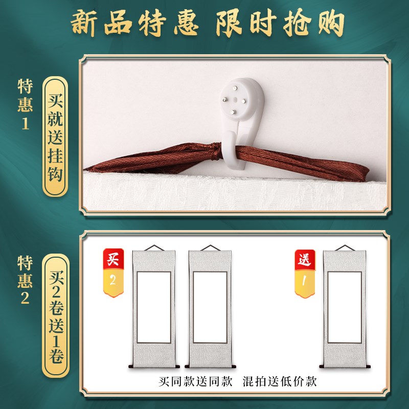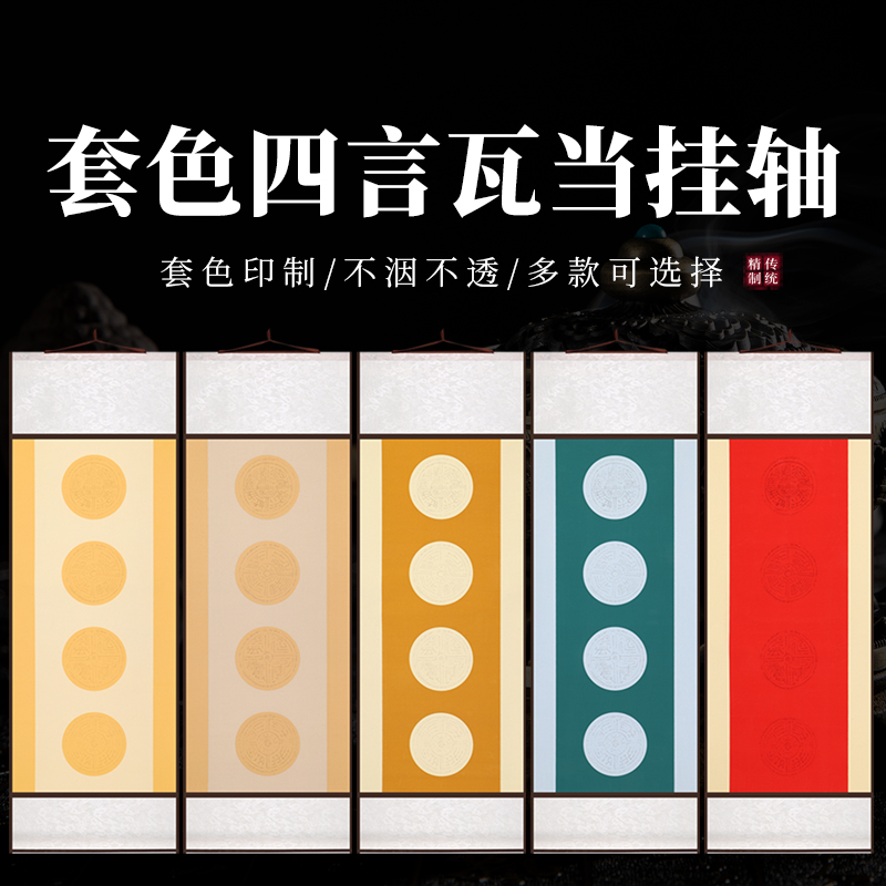 热销安徽泾县宣纸空白挂轴全绫精裱蜡染套色四言瓦当半生熟不洇书