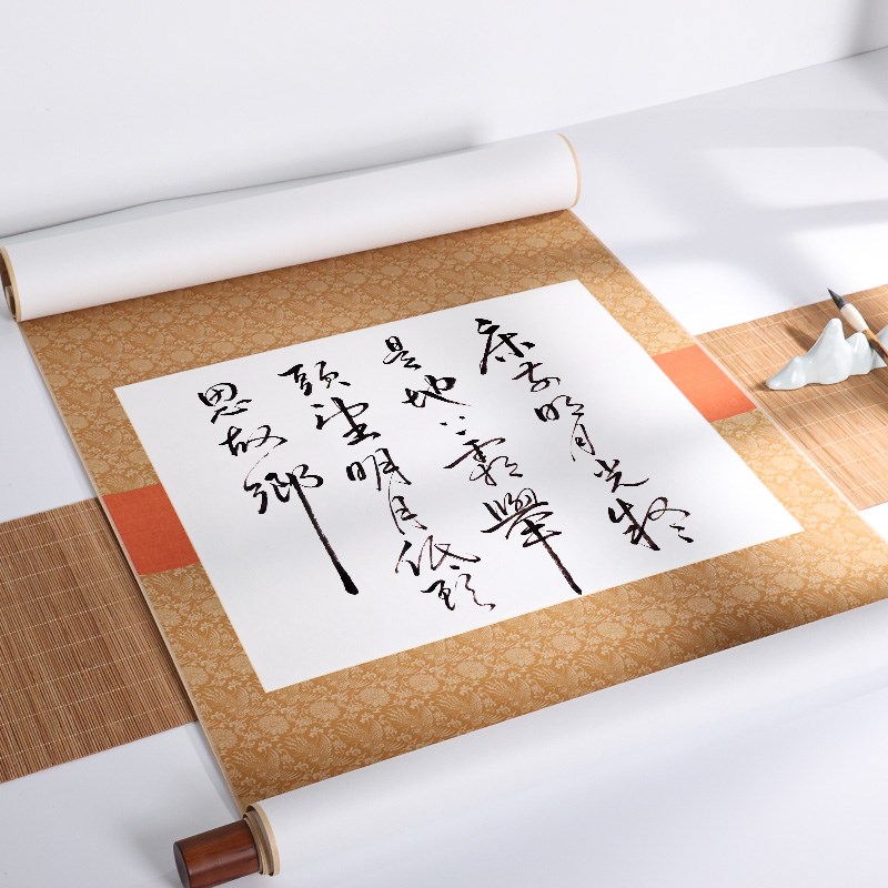 热销【仿古花纹空白宣纸卷轴】半生半熟长卷手卷画轴挂画毛笔字书