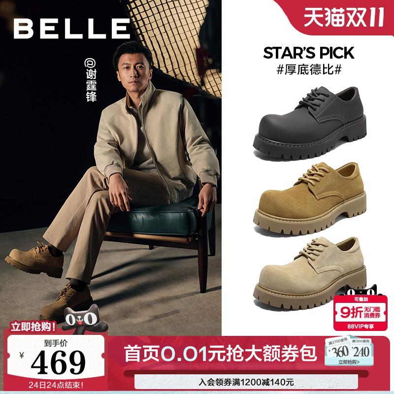 百丽男鞋厚底增高真羊皮商务鞋男士25秋新款爸爸休闲皮鞋8XG01