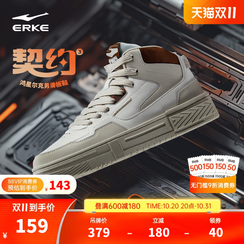 鸿星尔克男高帮板鞋男鞋冬季新款小白鞋契约厚底休闲鞋增高运动鞋