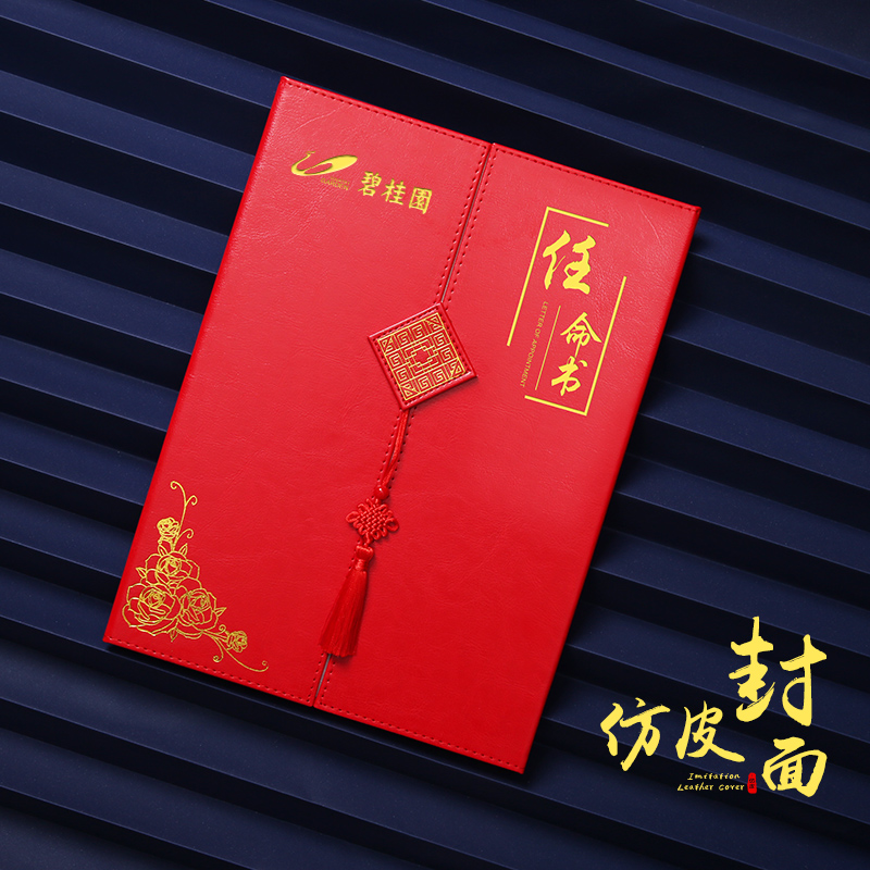高档中国结仿皮A4三折页荣誉证书聘书外壳颁奖奖状皮面捐赠证书套封