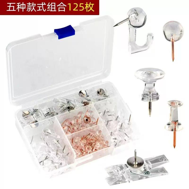 125/盒多功能创意透明图钉夹子套装玫瑰金圆球钉软木照片墙大头钉