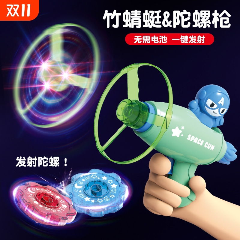 儿童发光飞碟枪飞盘竹蜻蜓的玩具户外运动地摊广场热卖六一礼夜间