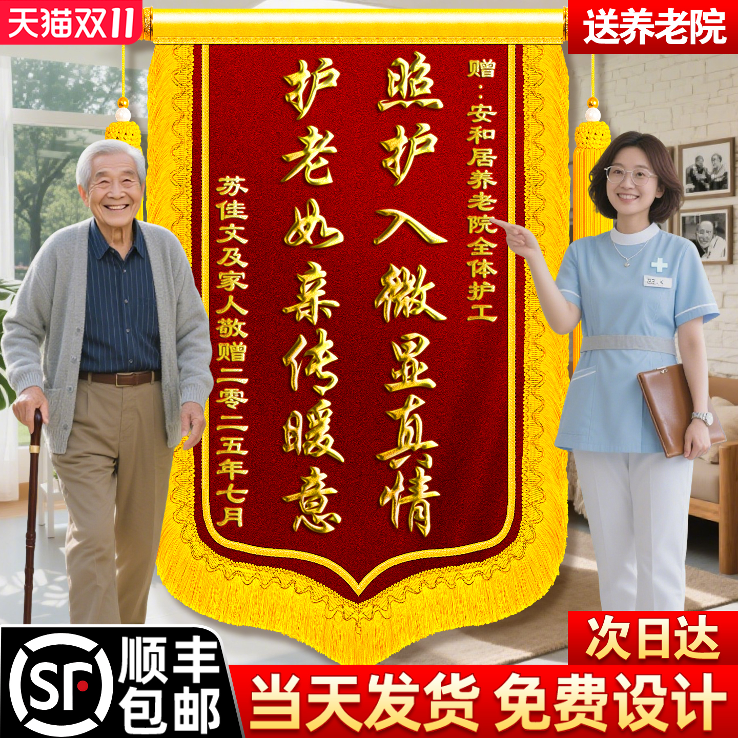 【顺丰包邮】锦旗定制感谢养老院