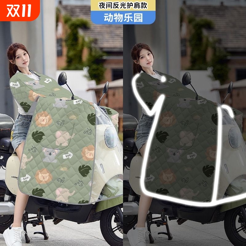 斗篷护肩电动车挡风被夏季加宽遮阳防晒电瓶摩托车夜间反光防风罩