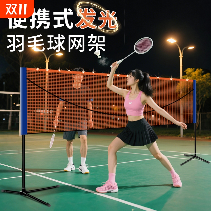 便携式发光羽毛球网架夜间室内标准网可折叠户外简易移动拦网架子