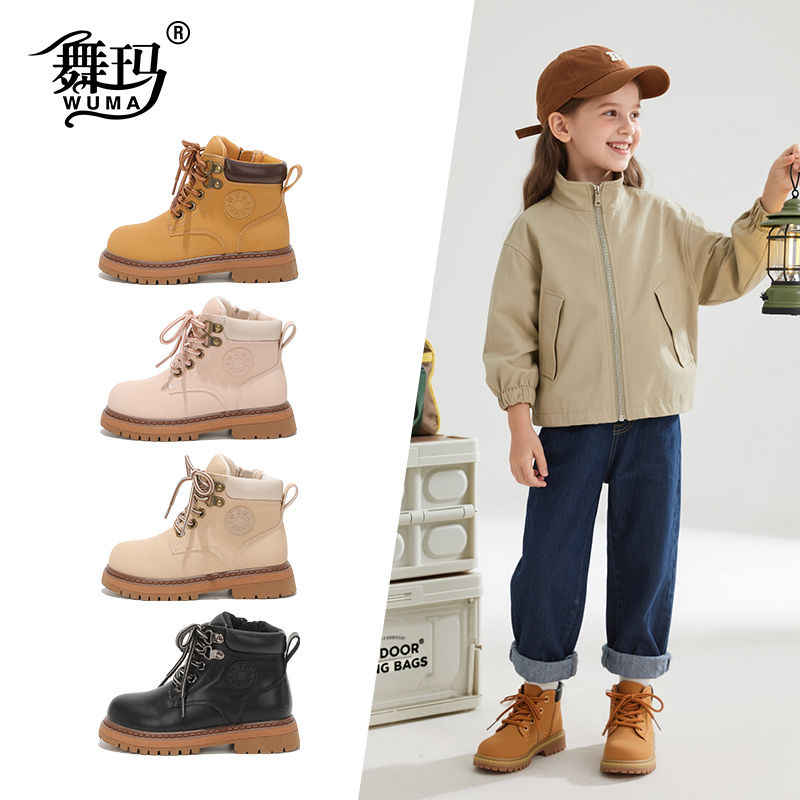舞玛男女童秋冬马丁靴儿童大黄靴
