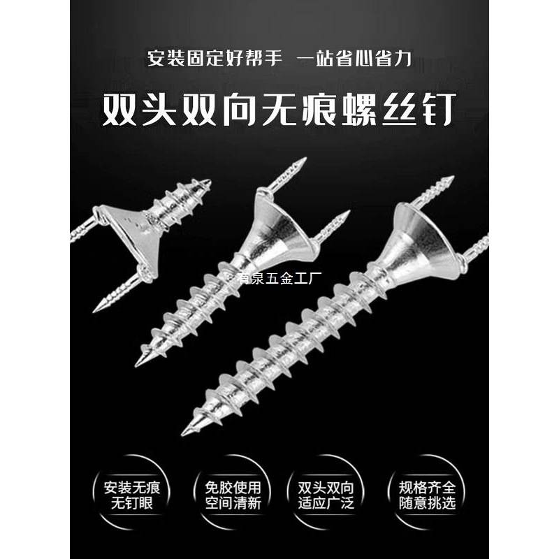 双向无痕羊角钉加固实木踢脚线衣柜广告字安装双头一体羊角螺丝钉