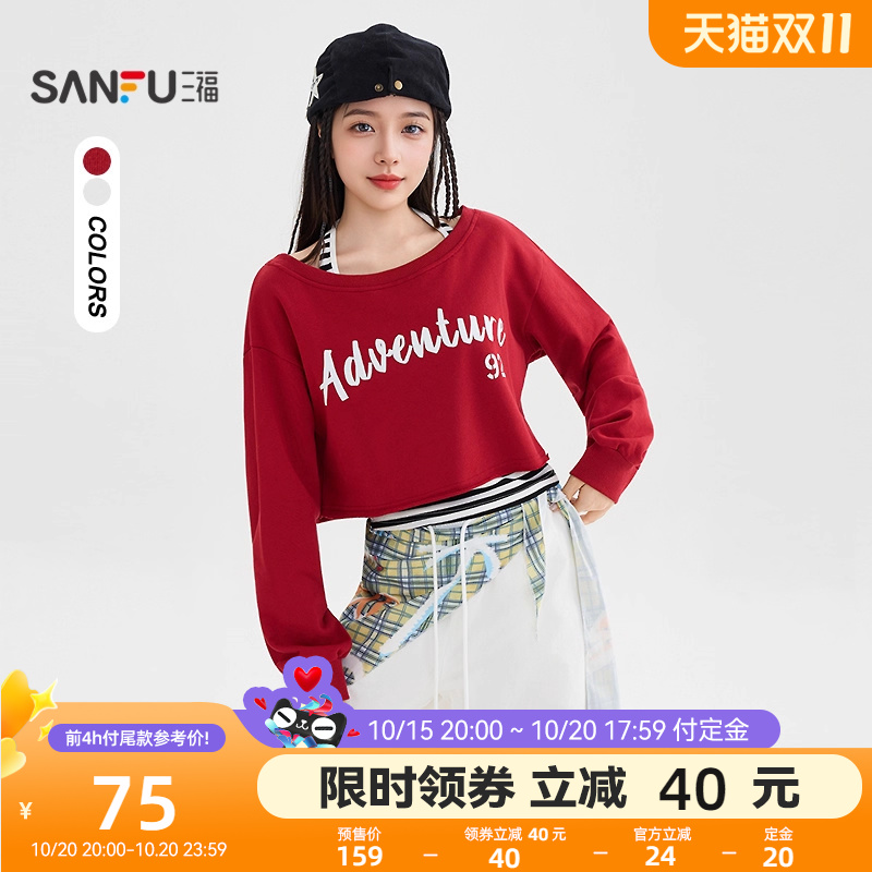 三福卫衣女2025秋季设计感挂脖条纹背心斜肩上衣两件套女装509
