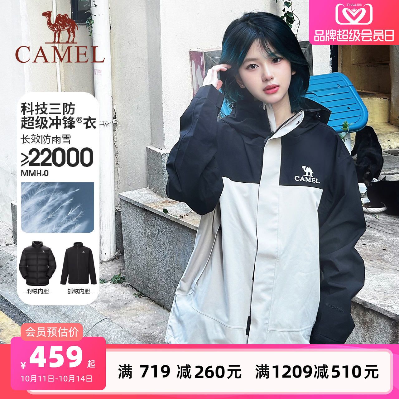骆驼女装冲锋衣外套三合一可拆卸秋冬新款抓绒内胆防水休闲外套