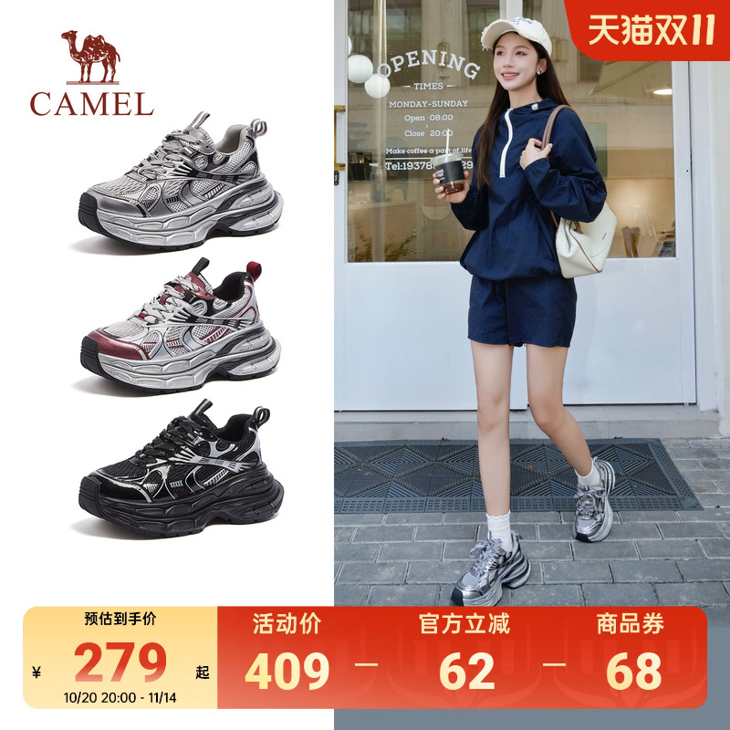 骆驼女鞋2025秋季新款运动鞋女款老爹鞋透气厚底增高户外休闲鞋子