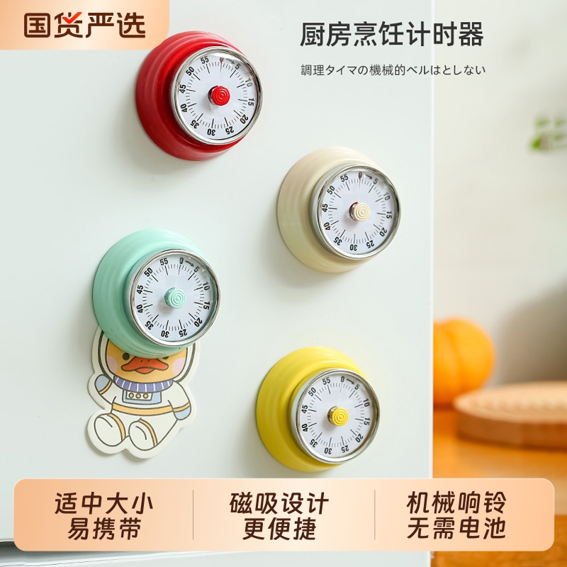 厨房磁吸计时器机械定时器厨房提醒器小学生自律神器学习秒表闹钟
