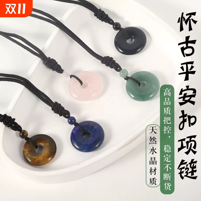 天然水晶玛瑙宝石高级感情侣款平安扣礼物吊坠绳子轻奢