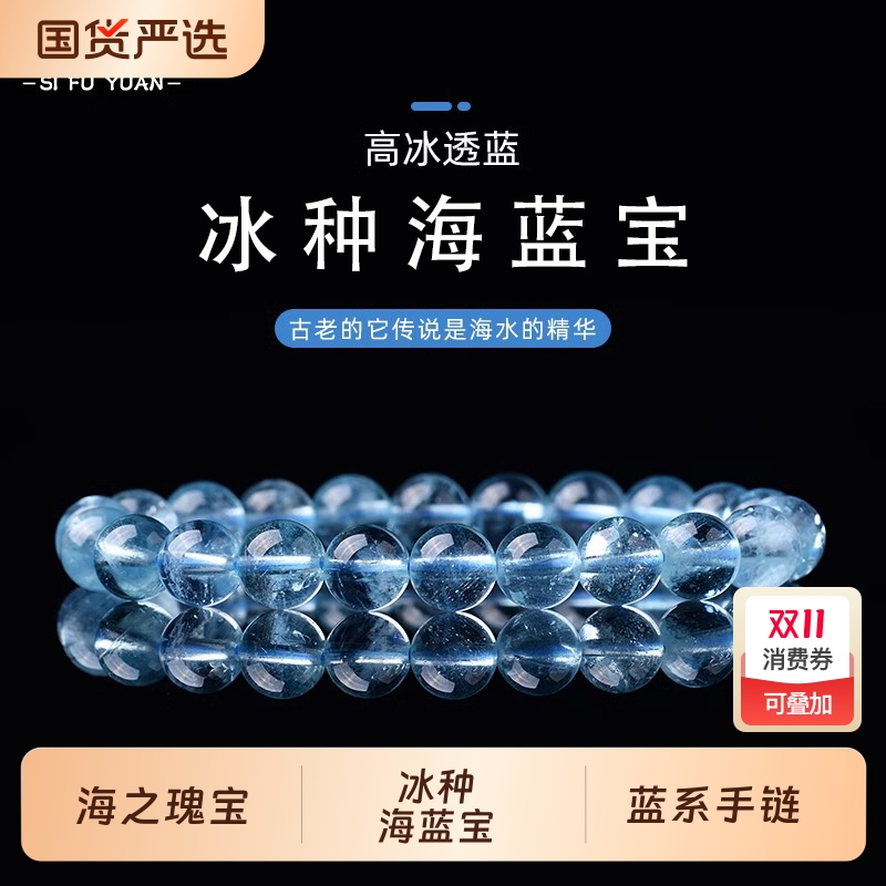 海蓝宝手链冰透蓝色系宝石水晶手串珠子男女冰种魔鬼蓝补水送礼物