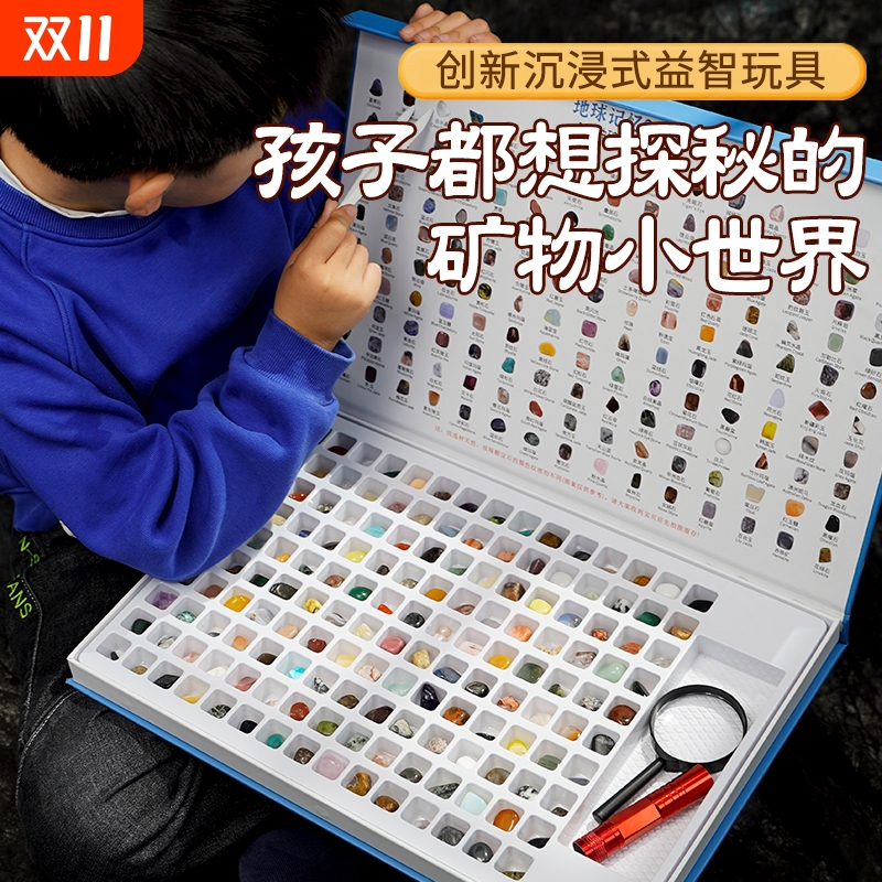 150种天然宝石礼盒儿童石头水晶玛瑙矿石探索玩乐益智玩具手工