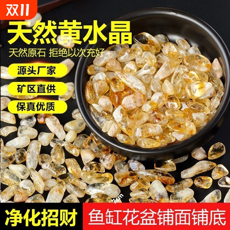 天然巴西黄水晶碎石聚宝盆摆件裸石鱼缸供曼扎宝石镶嵌保真招财