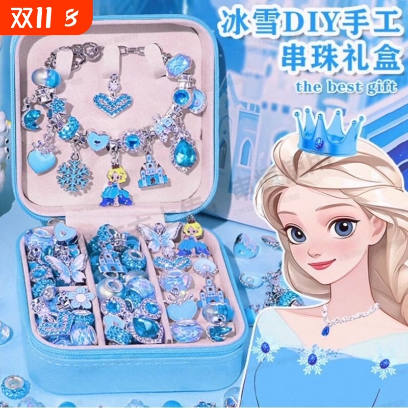 儿童穿串珠子手工diy材料宝石玩具女孩艾莎公主水晶手链生日礼物