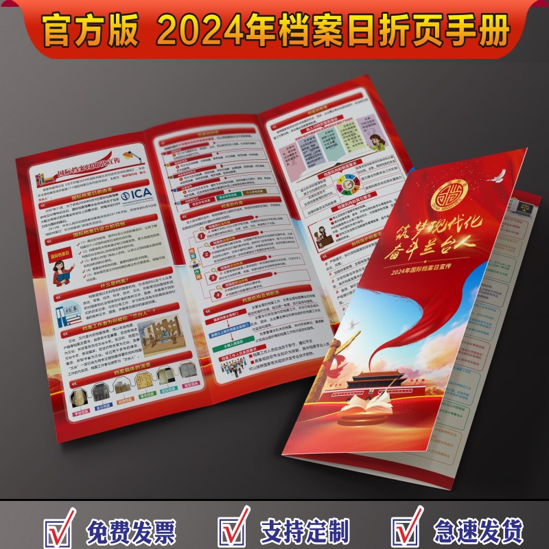 2024年国际档案日海报档案日宣传单档案日三折页档案实施条例折页