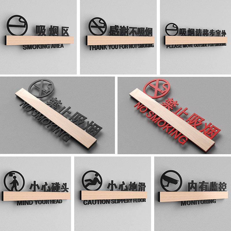 禁止吸烟温馨g提示牌小心碰头/y地滑标识牌内有监控警示牌闲人免
