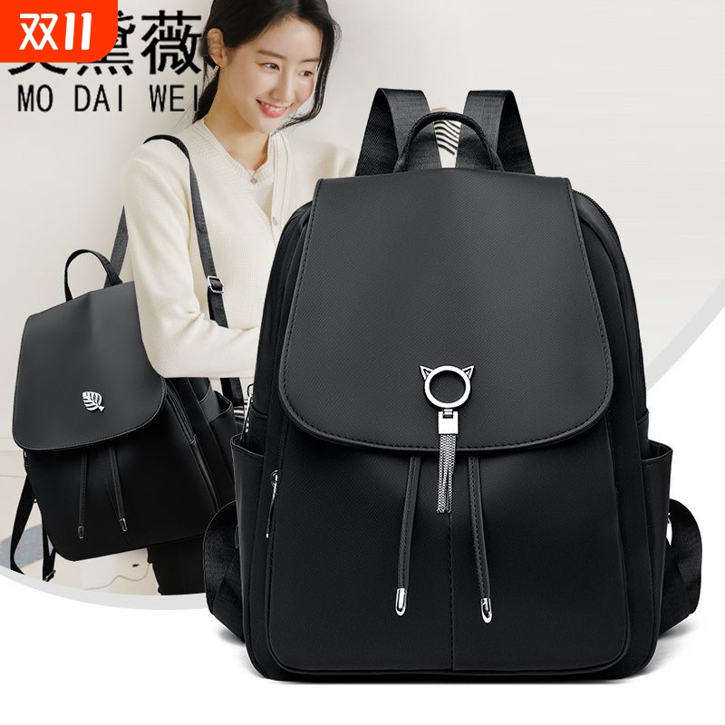 莫黛薇简约纯色牛津布双肩包女中年妈妈时尚背包早八通勤小书包潮