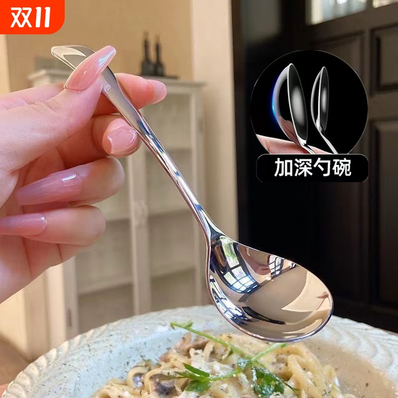 卡罗特勺子304不锈钢儿童吃饭喝汤勺小汤匙家用圆勺干饭人专用