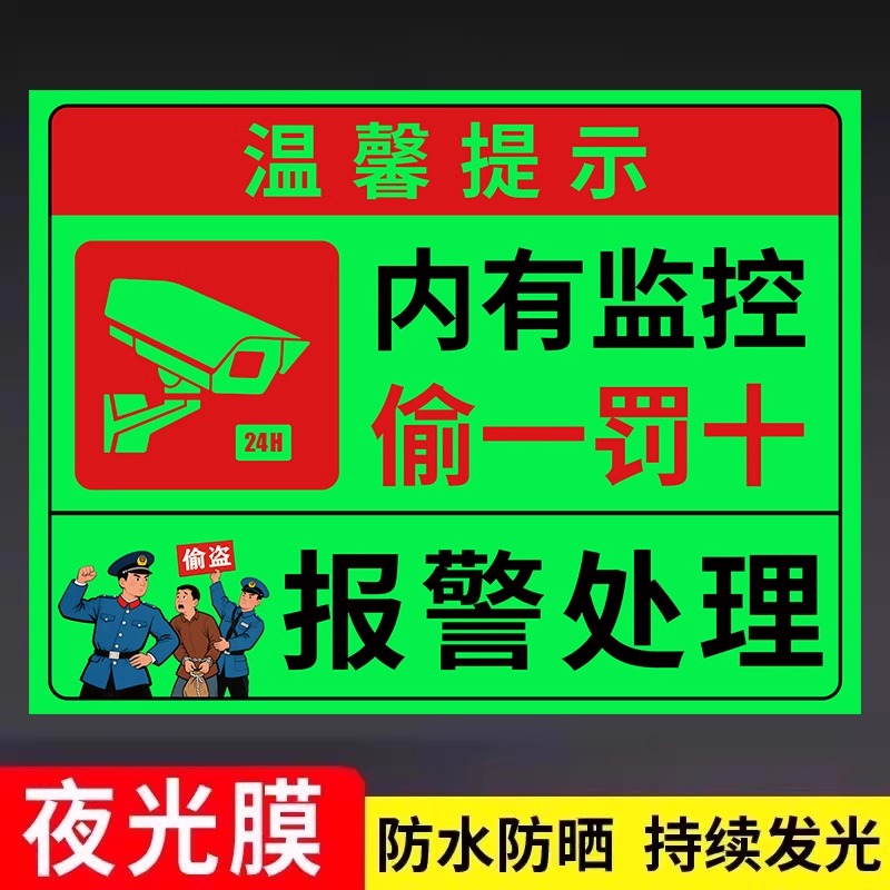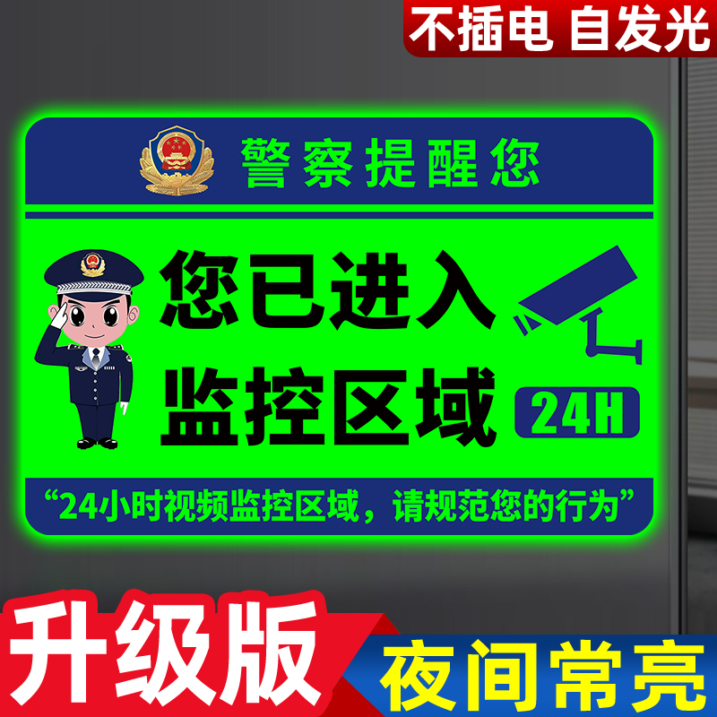 夜光监控警示牌监控提示牌你已进入监控区域内有监控提示牌24小时电