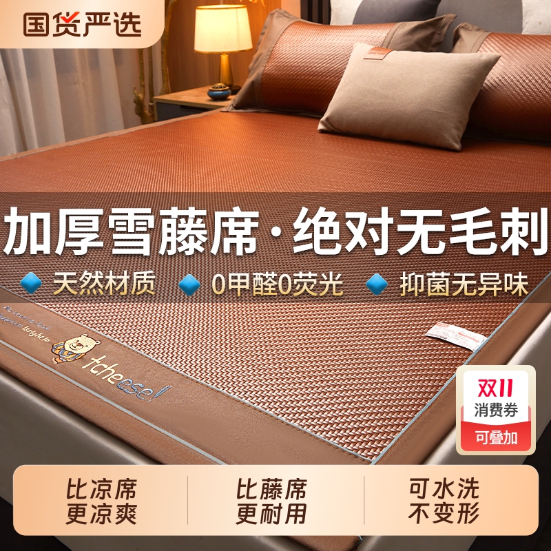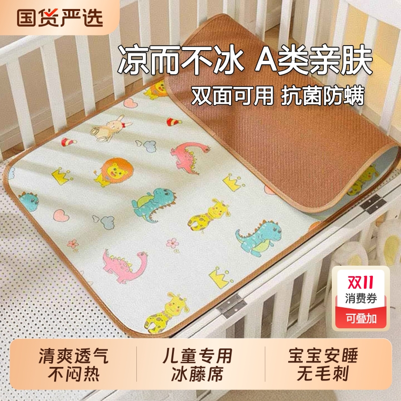 婴儿凉席儿童幼儿园午睡夏季宝宝婴儿床冰丝A类专用藤席席子双面