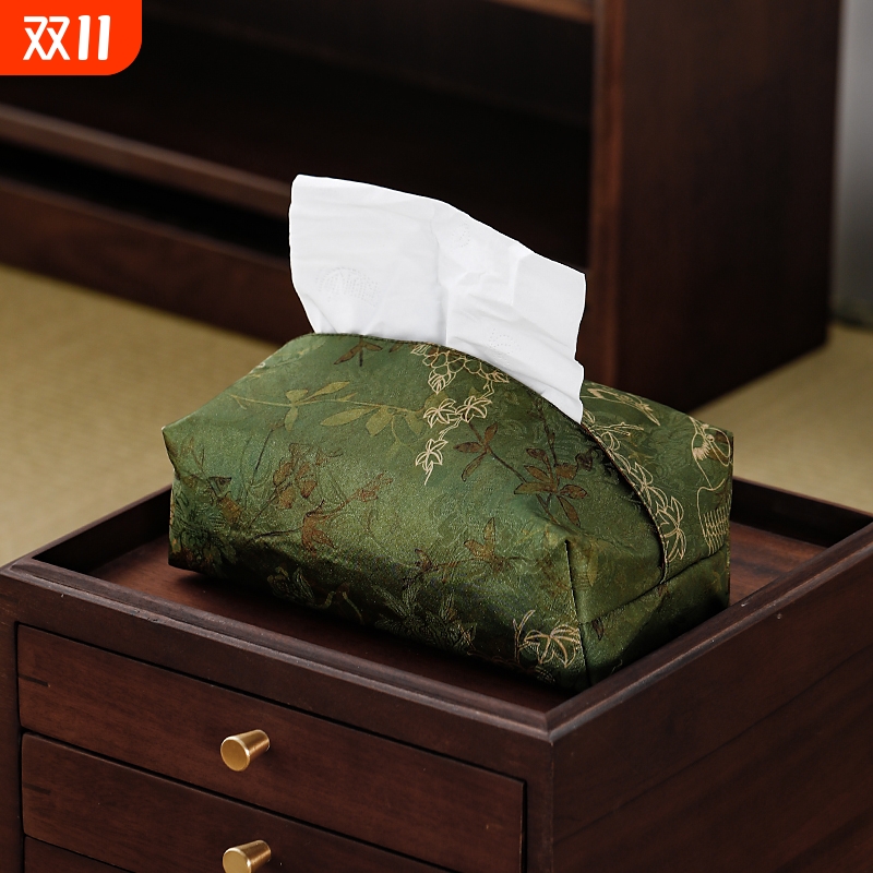 香云纱纸巾盒布艺抽纸盒茶席茶室客厅茶几装饰摆件日用防尘收纳袋