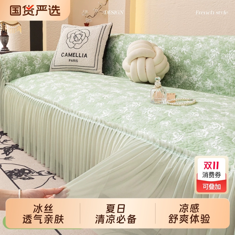 2025夏季新款冰丝凉感豆豆沙发盖布巾盖毯凉席垫全包夏天用防猫抓