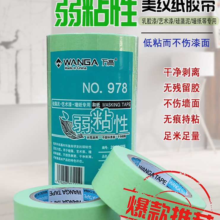 美纹纸胶带性艺术漆无痕喷漆遮蔽易撕墙面性低粘和纸胶带弱粘高万