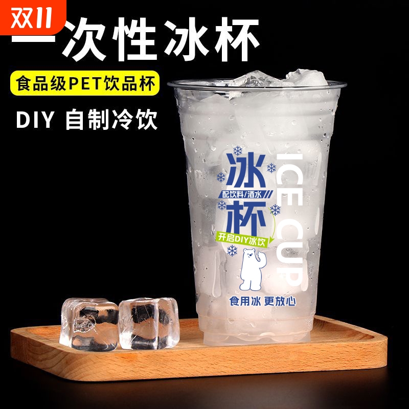 不带冰块便利店冰杯一次性食用级耐冻diy自制饮料调酒咖啡冷饮杯